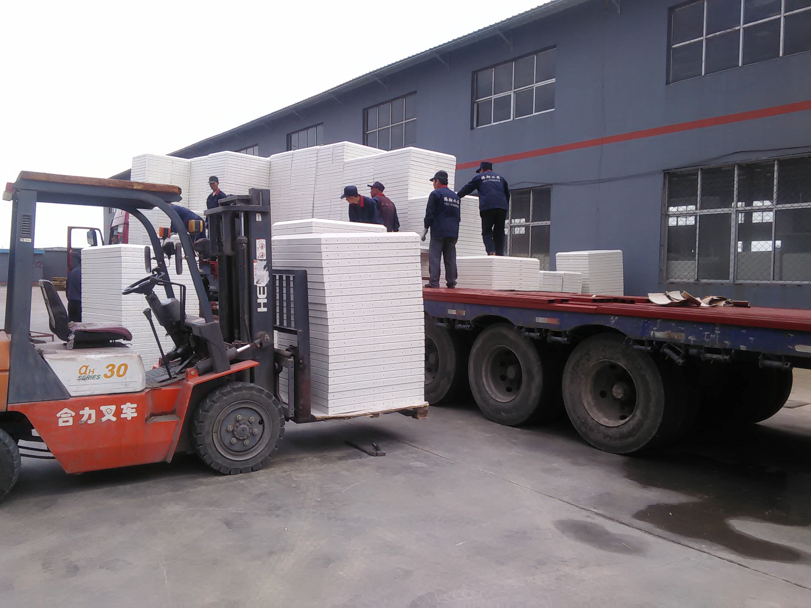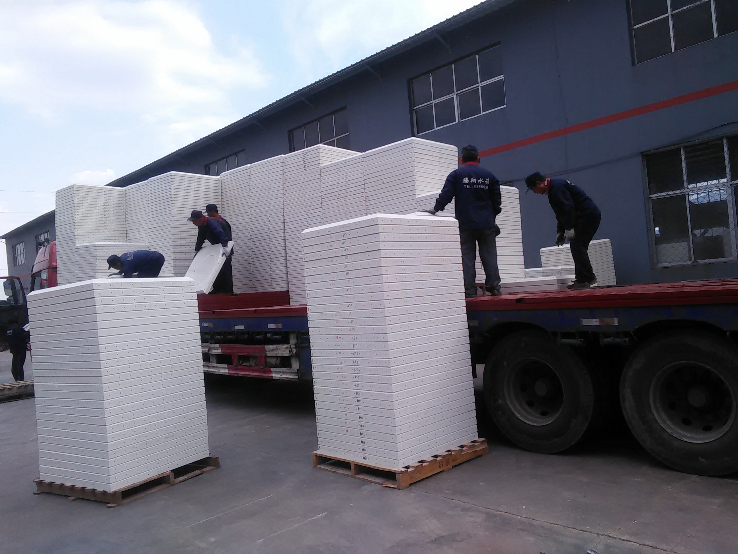 發(fā)往北京的玻璃鋼水箱裝車中
