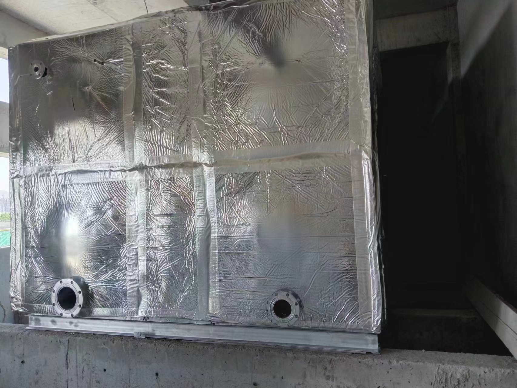 我公司承接的山東淄博福源泰有限公司年產20萬方新型高回彈聚氨酯新材料及智慧型寢具技改項目30立方鍍鋅鋼板保溫水箱已經安裝試水完成。水箱位于室內,采用的是5公分橡塑鋁箔布保溫。安裝現場圖如下: