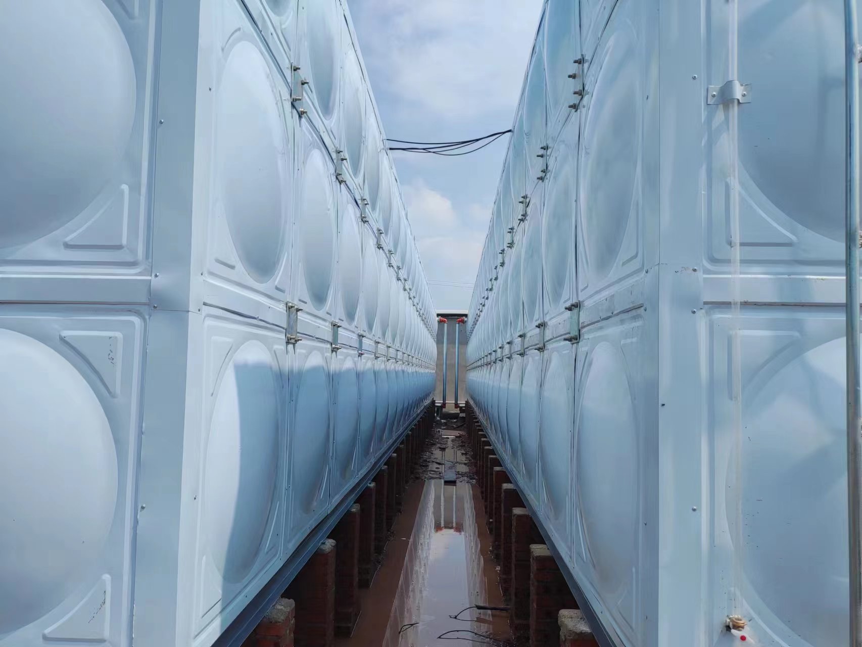 我廠承接的山東省煙臺(tái)棲霞市新好牧農(nóng)場兩臺(tái)315立方聚氨酯玻璃鋼水箱已經(jīng)安裝完成。現(xiàn)場實(shí)拍照片如下: