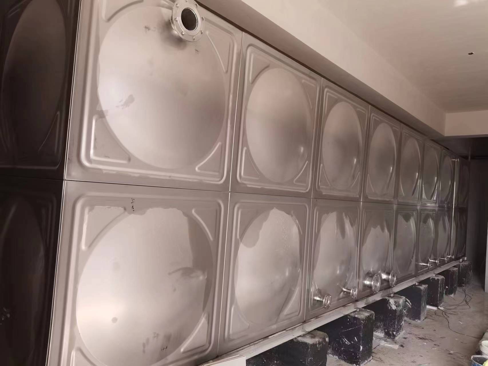 3,該不銹鋼水箱方便,舒適的組合:該單元由矩形不銹鋼成型板組裝焊接組成,根據設備安裝位置,可組合成多邊形,階梯形,L形等不同形狀的水箱。